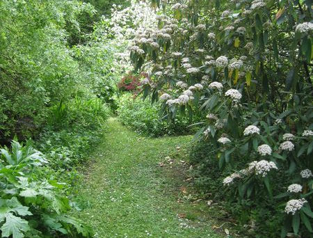 A shaded garden between the river and the mill stream.