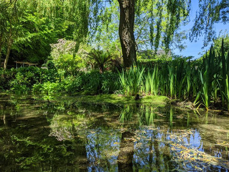 Tranquil water gardens, with crystal clear water that flows from the spring in the grounds of the Wishing Well Tearooms.
